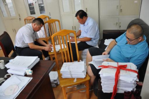 工作人員正在逐一清點(diǎn)回收的答題卡